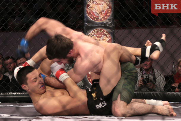 Победный почин спортсменов Коми поддержал ухтинец Сергей Лысенко, в середине первого раунда также удушающим приемом одолев своего соперника из Саратова Илью Зазнобина. Отметим, что для бойца из Ухты эта победа стала первой на профессиональном уровне после двух предыдущих ничейных схваток.