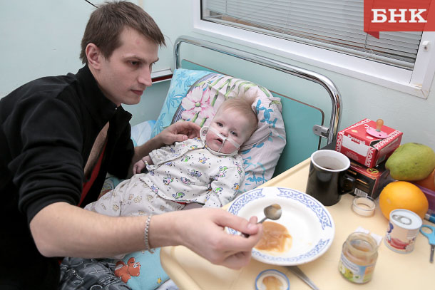 Фото Николая АнтоновскогоСейчас маленькой Надежде из Воркуты десять месяцев. Девочка родилась с целым списком заболеваний, каждое из которых по отдельности требует особого хирургического вмешательства. Среди первоочередных - операции на сердце. Первую кардиохирурги уже провели, сейчас Надя ждет вторую, вместе с папой проводя время в палате отделения детской кардиоревматологии республиканского кардиоцентра.