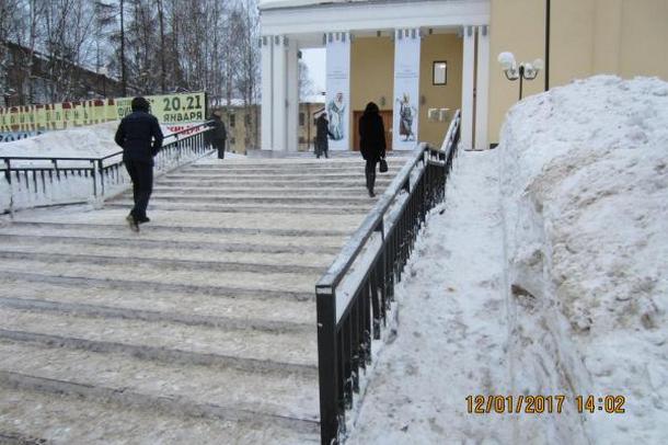 Фото с портала "Активный регион"- Дорогу санкам! Трудно, а порой иногда и невозможно подняться на санках с ребенком к театру, хотя боковые дорожки есть, но они завалены снегом. Прошу очистить! - поступил сигнал от горожан на общественный портал Коми.