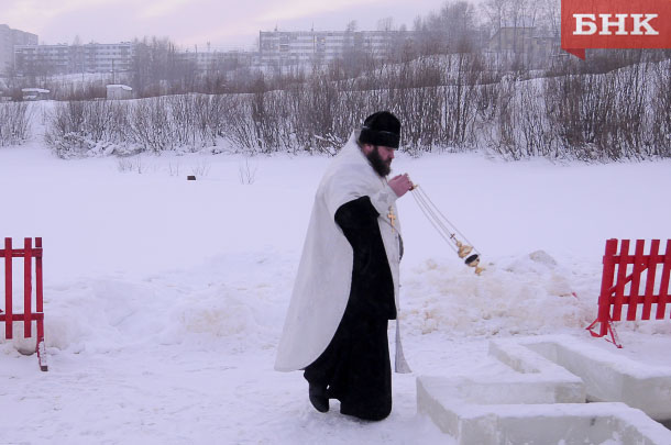 Ровно в 15:00 священник эжвинского храма отец Михаил начал ритуал освящения, который занял около получаса. В это время над берегом Вычегды, где проходило таинство, понемногу сгущались сумерки. В ходе церемонии отец Михаил несколько раз окунал в купель святой крест. Закончив ритуал, батюшка благословил собравшихся. Поцеловав крест, верующие направились в палатки, чтобы подготовиться к купанию. В воду заходили быстро. Примечательно, что на морозе в 13 градусов в воду все входили легко. Кто-то окунался с головой. Другие — приседали лишь по шею. Закончив омовение, люди поздравляли друг друга с праздником.