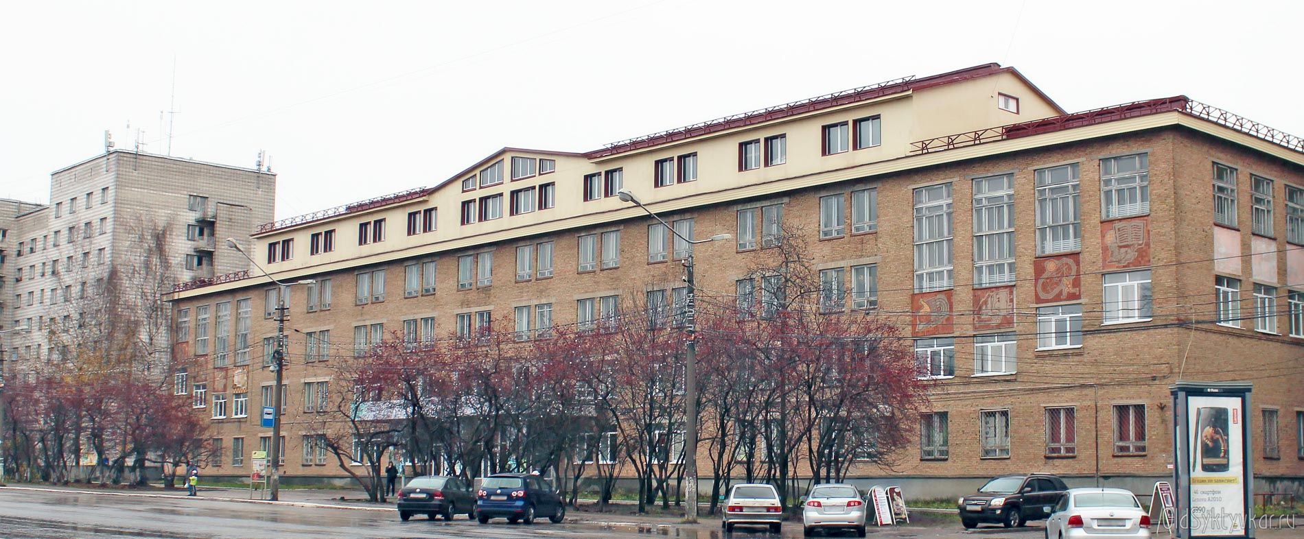 На фотографии "Старого Сыктывкара" - новый корпус Коми государственного педагогического института (теперь — СГУ им. Питирима Сорокина). На крыше здания - надпись, характерная для советской эпохи: "Да здравствует Коммунистическая партия Советского Союза".