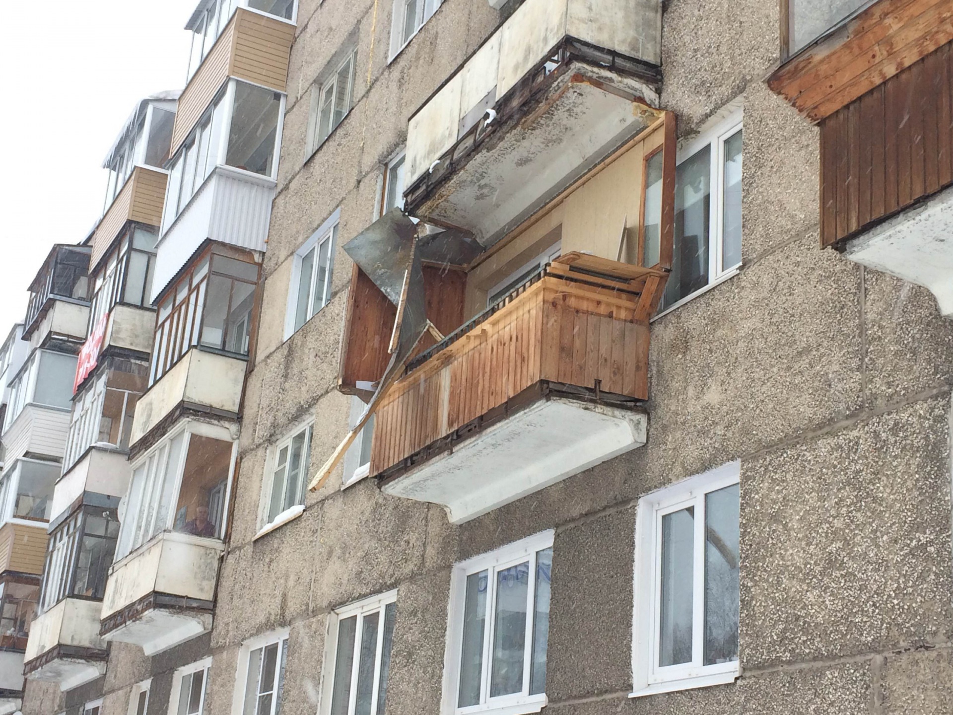 На улице Первомайской в центре Сыктывкара сегодня днем рухнул снег с крыши пятого этажа дома и снес половину балкона на втором этаже. По счастливой случайности никто не пострадал, сообщил БНК очевидец произошедшего.