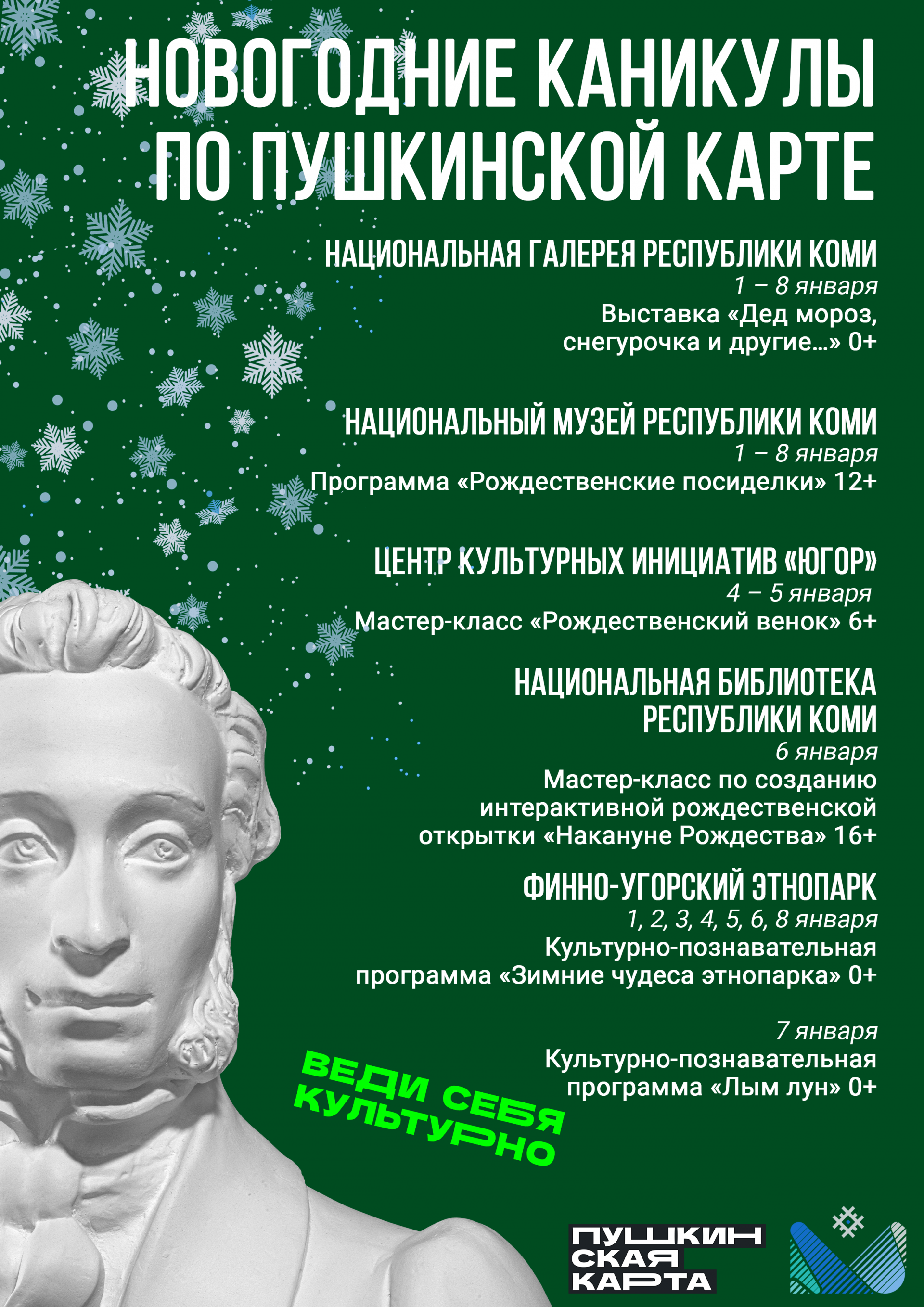 Новый год - время подарков, а подарки любят и маленькие, и взрослые. Учреждения культуры региона тоже решили сделать подарок жителям региона и подготовили обширную программу новогодних мероприятий, которые можно посетить по Пушкинской карте.