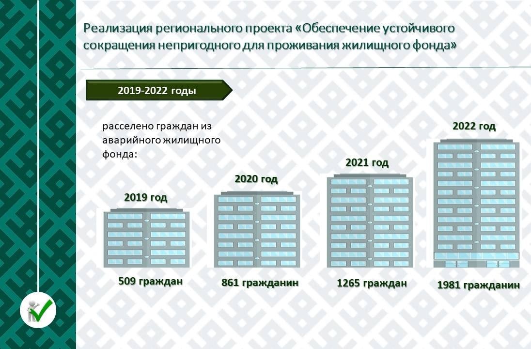 Итог работы в рамках регпроекта "Обеспечение устойчивого сокращения непригодного для проживания жилищного фонда" - в 2022 году 1981 гражданин переселен из аварийного жилья.
