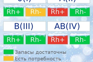 На сегодня "донорский светофор" выглядит следующим образом: недостаточно крови: I- группы, острая нехватка крови: II+, IV+ группы.