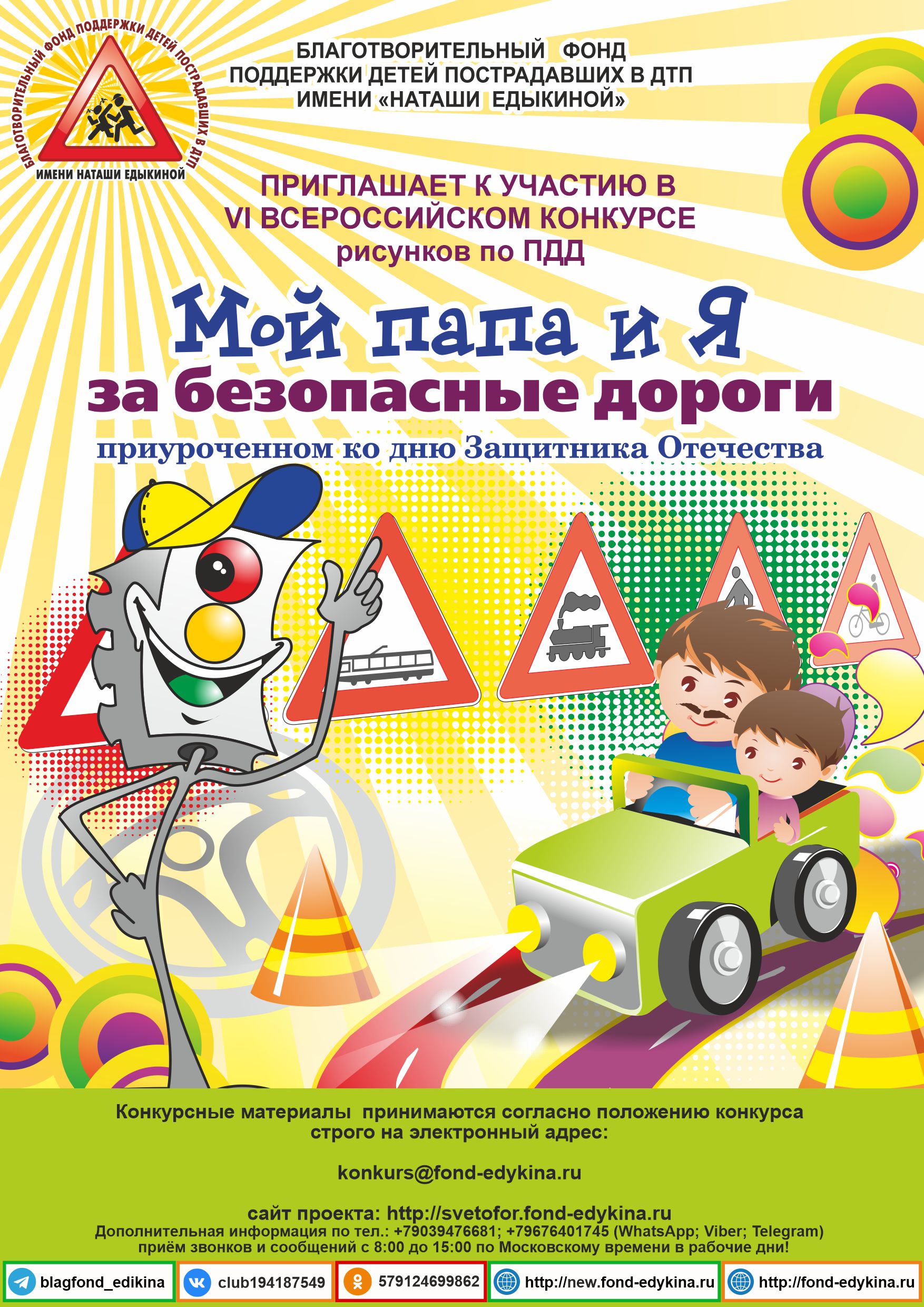 Благотворительный фонд поддержки детей, пострадавших в ДТП, имени Наташи Едыкиной приглашает юных жителей Коми к участию в тематическом конкурсе. Дети республики могут создать оригинальные рисунки и отправить их на VI Всероссийский конкурс по ПДД "Мой папа и Я за безопасные дороги".