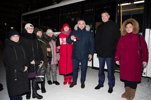 Александр Голованев передал Николаю Такаеву ключи от автобуса ПАЗ Вектор Next, приобретенного на средства компании "ЛУКОЙЛ". Техника закуплена специально для работы на сельском маршруте, связывающем Усинск с Новикбожем и соседней Усть-Усой. Пробная поездка состоялась уже вчера вечером. Приобретение современного, теплого и комфортного автобуса стало одним из пунктов протокола первой встречи с инициативными новикбожцами летом прошлого года. Пассажировместимость "пазика" - до 30 человек, это автобус нового поколения с повышенными потребительскими и техническими характеристиками.