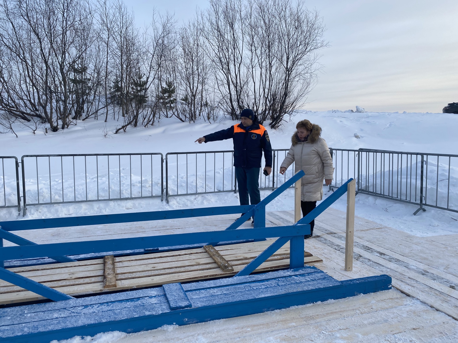 Для обеспечения безопасности граждан, участвующих в крещенских купаниях депутат Государственного Совета Республики Коми от партии "Единая Россия", руководитель Региональной общественной приемной председателя партии Надежда Дорофеева, совместно с врио начальника Центра Государственной инспекции по маломерным судам Николаем Величко провели приемку купелей в Заречье и местечке Красная гора (Кирульская курья).