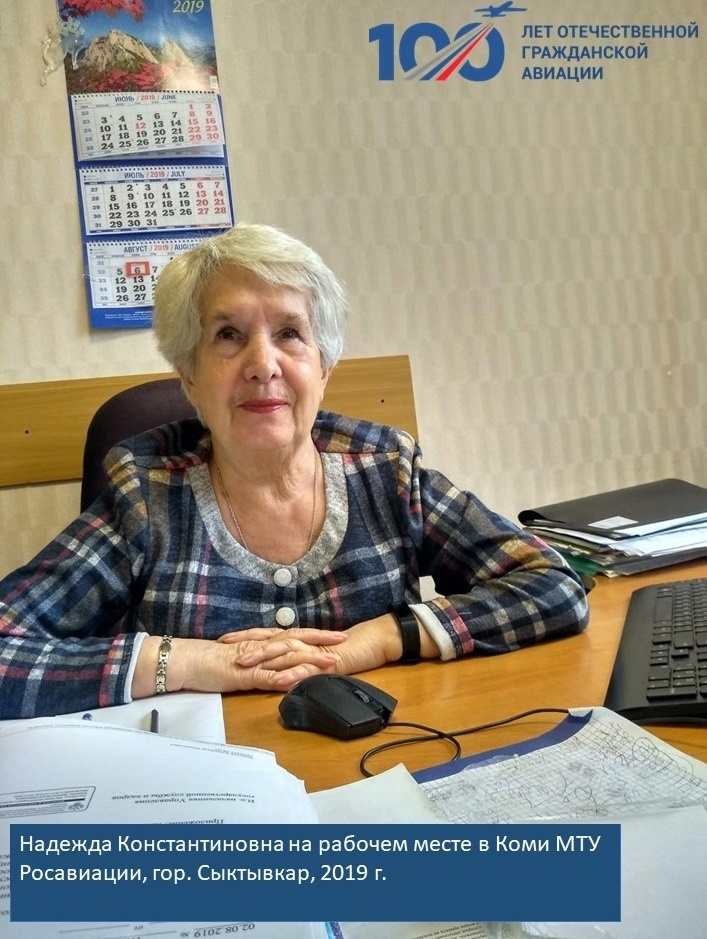 На протяжении всей трудовой деятельности Надежда Константиновна была инициатором и координатором проведения всех значимых событий в авиационной отрасли региона. В тесном взаимодействии с профильными министерствами и ведомствами Республики Коми принимала участие в разработке программ и подготовке предложений по развитию гражданской авиации.