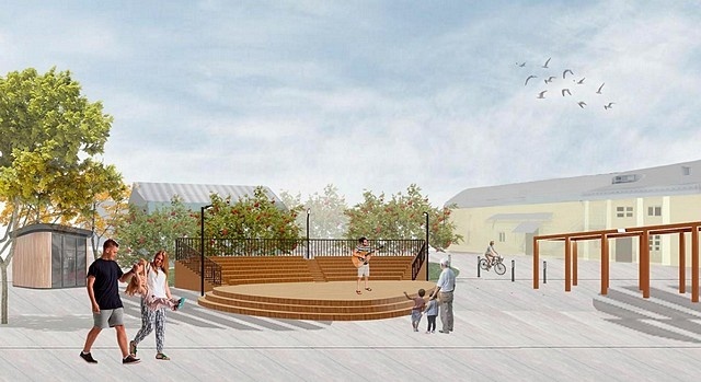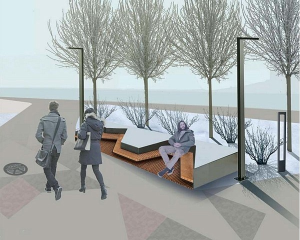 Кроме того, дизайнеры предусмотрели высадку морозостойких деревьев, не вызывающих у людей аллергию, установку скамеек и урн. В другом проекте вместо концертной зоны — киноплощадка с проецированием экрана на фасад здания.