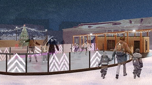 Студенты предложили обустроить возле "Октября" уличную концертную площадку в виде амфитеатра в теплое время года, а зимой на этом месте залить каток и поставить павильон с пунктом проката. Вместимость предполагаемого катка — 37 человек.