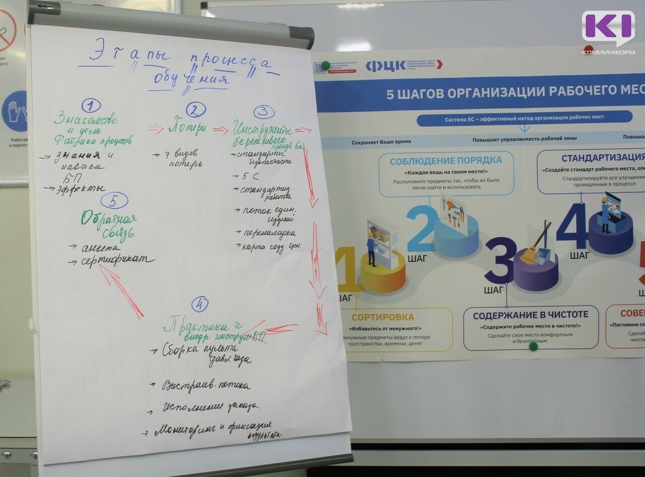 Учебно-производственная площадка "Фабрика процессов" была открыта в декабре прошлого года. Задача тренеров организации - внедрить технологию бережливого производства на максимальном количестве предприятий в Коми.