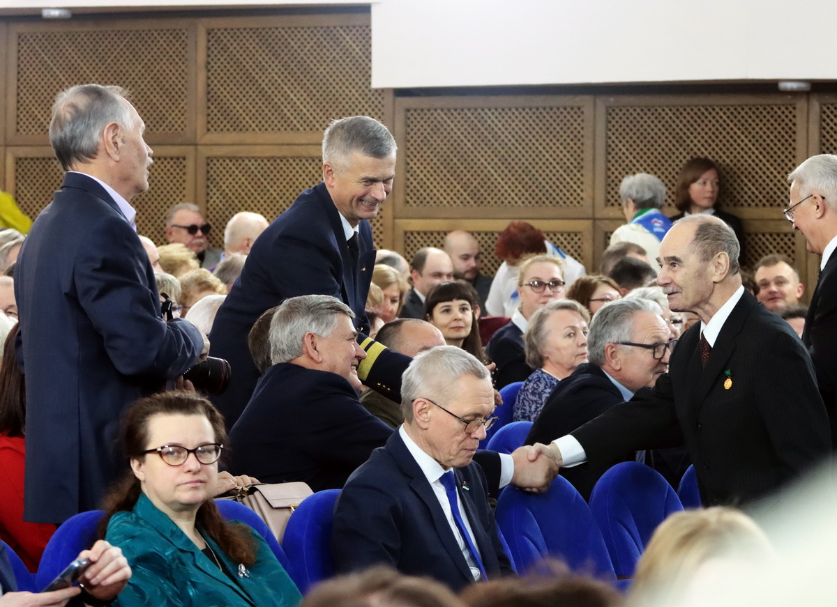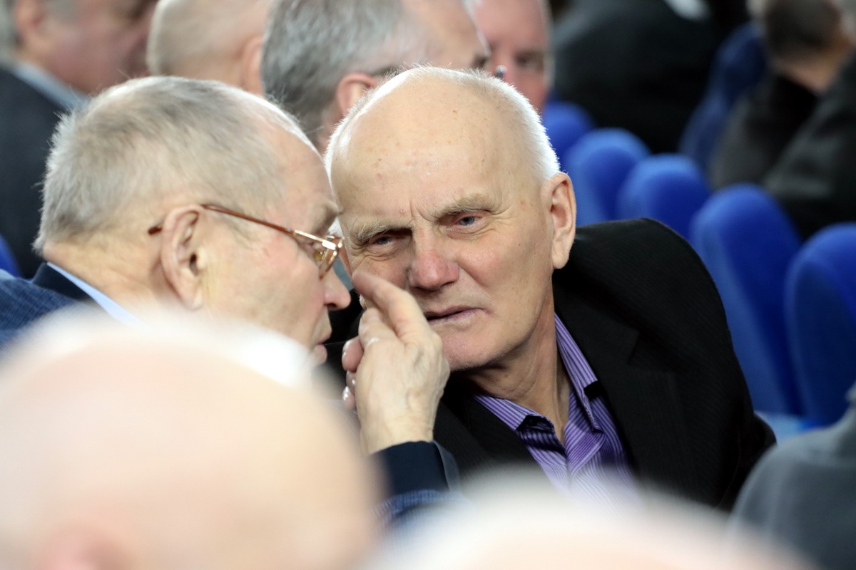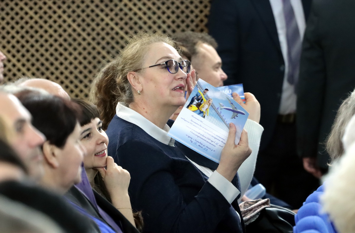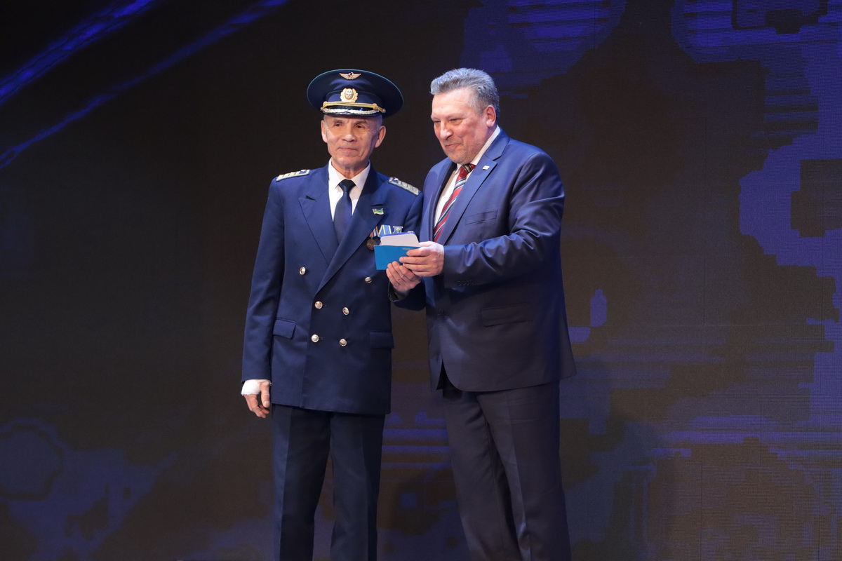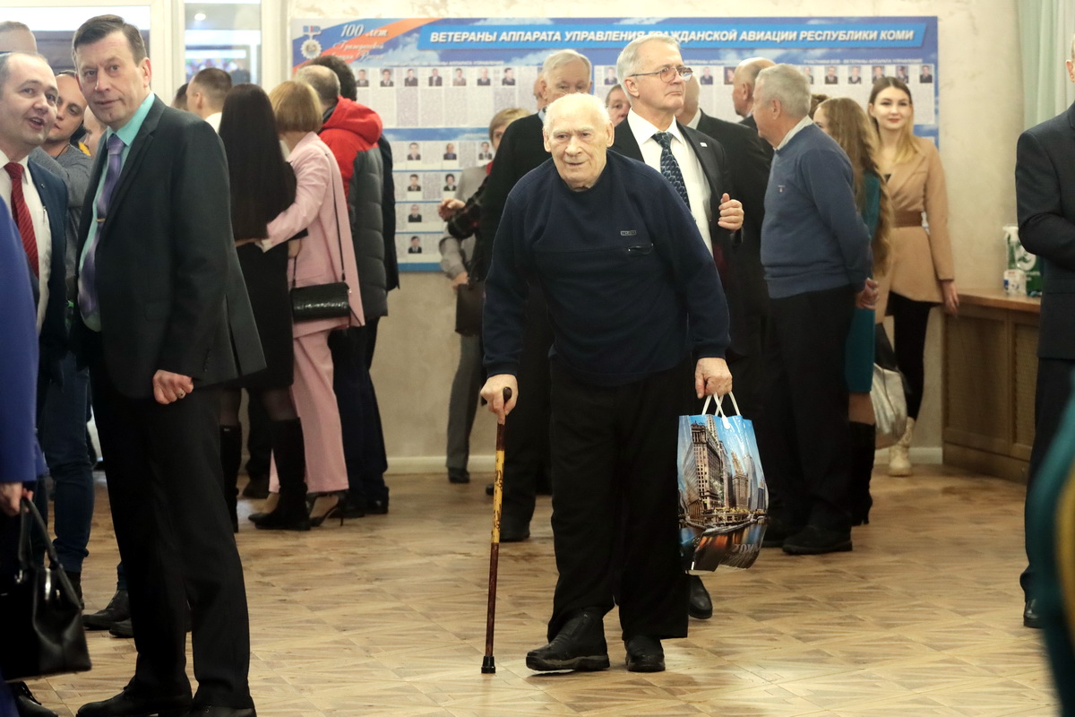 "Сегодня здесь присутствует Леонид Сергеевич, который налетал более 20 тыс.600 часов. Я думал, что лидер - Константин Макаренков, который тоже сегодня здесь, но его воспитанник уже налетал больше. К нам приехал летчик из Германии, а это не просто сделать. Сергей Сотников из Ижмы тоже здесь с нами! Больше 66 лет форму носит Борис Федосеевич, но его сегодня нет, он немного приболел, давайте похлопаем ему - 5 июня ему будет 85 лет."