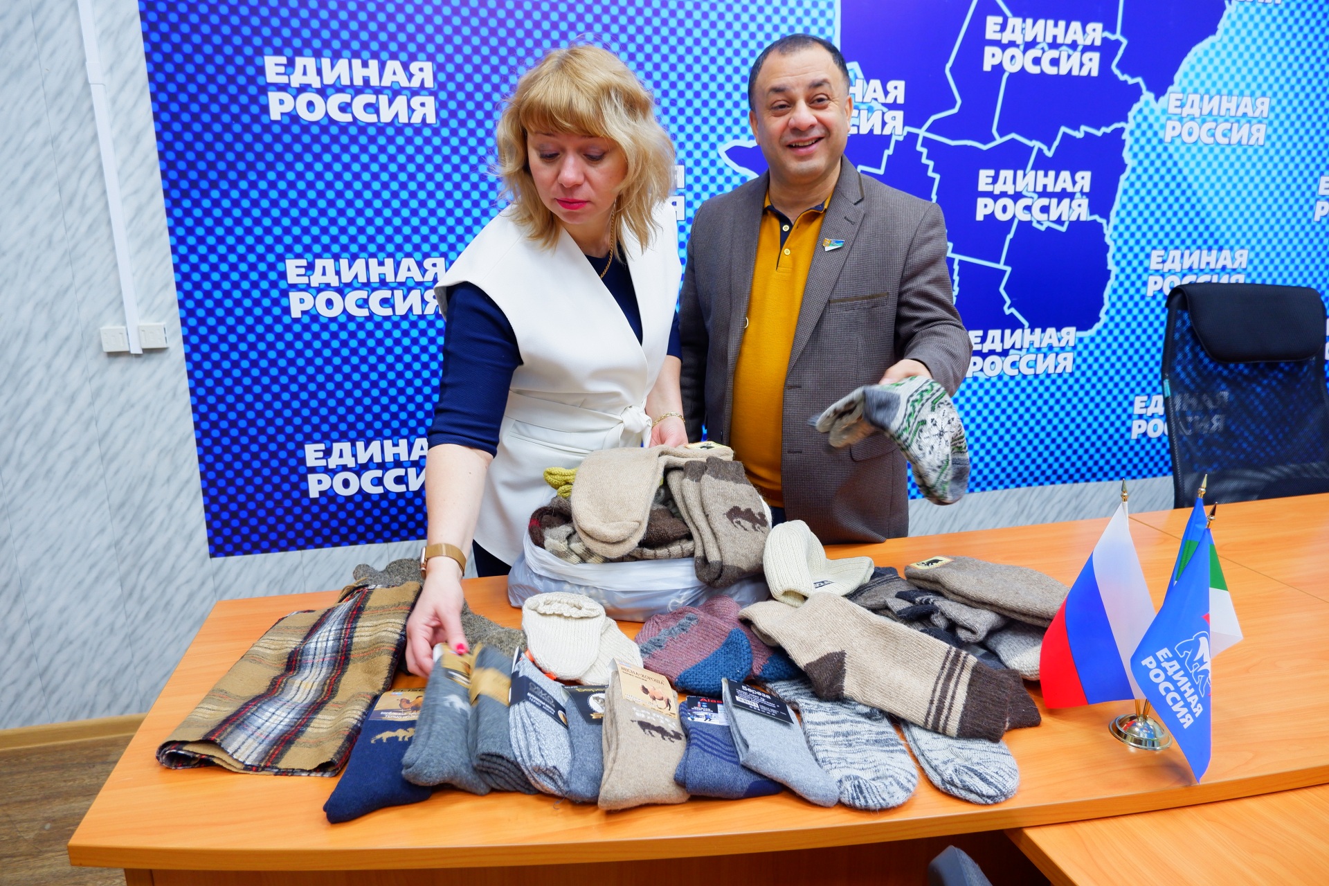 В свою очередь, от совета сторонников партии "Единая Россия" ректор Коми республиканского института развития образования Галина Китайгородская и депутат Совета города Сыктывкара Ахмедага Ахмедов принесли в центр теплые вещи, носки и перчатки для ребят.