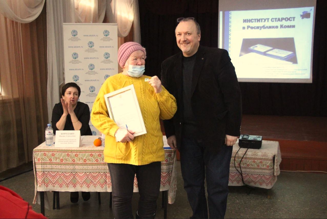 В конце встречи особое внимание было уделено главным помощникам местной власти - сельским старостам. В муниципальном районе "Печора" 10 старост. Юрий Болобонов рассказал о развитии института старост в республике, о том, что такие неравнодушные люди играют огромную роль в местном самоуправлении. Также он вручил всем старостам благодарственные письма Ассоциации "Совет муниципальных образований Республики Коми" за вклад в развитие гражданского общества и успешную работу по развитию института старост в Республике Коми и нагрудный отличительный знак сельского старосты.