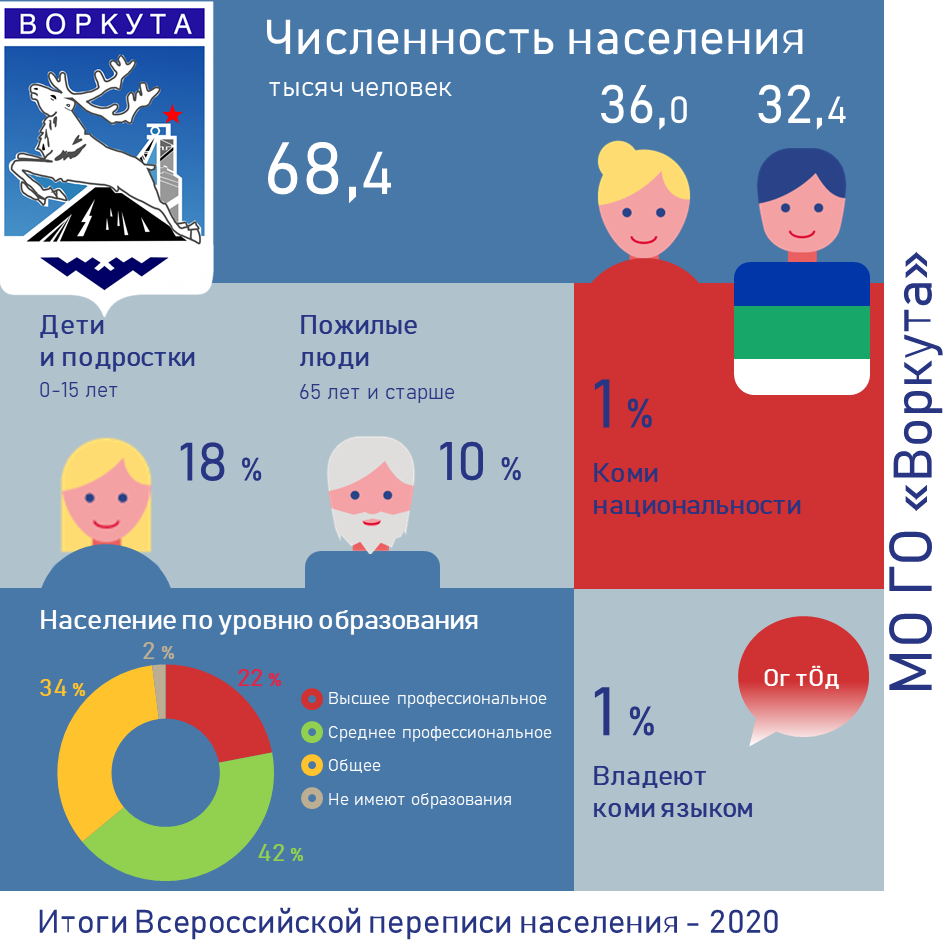 В Заполярье, к примеру, жителей коми по национальности всего 1%. Детей и подростков на 8% больше, чем пожилых людей.