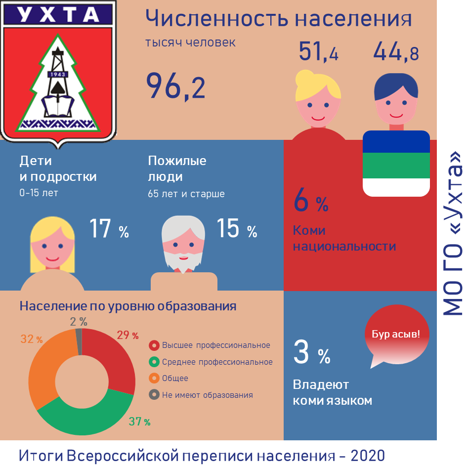 В Ухте к коми национальности причислили себя 6% горожан, говорят на родном языке 3%.
