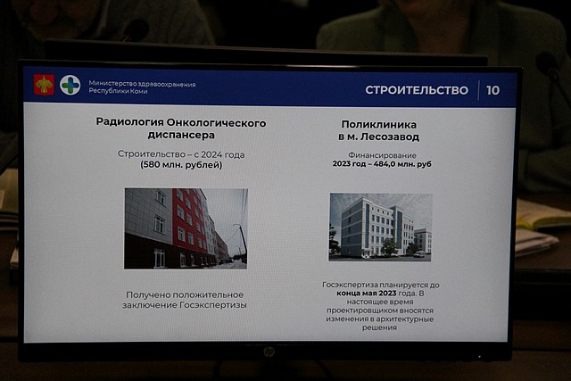 В Сыктывкаре в рамках адресной инвестиционной программы Республики Коми на 2023 год и на период 2024-2025 годов запланированы мероприятия по строительству Республиканской инфекционной больницы, реконструкции радиологического отделения Коми Республиканского онкологического диспансера по ул. Гаражной, здания поликлиники в м.Лесозавод (объект находится на стадии разработки проектной документации).