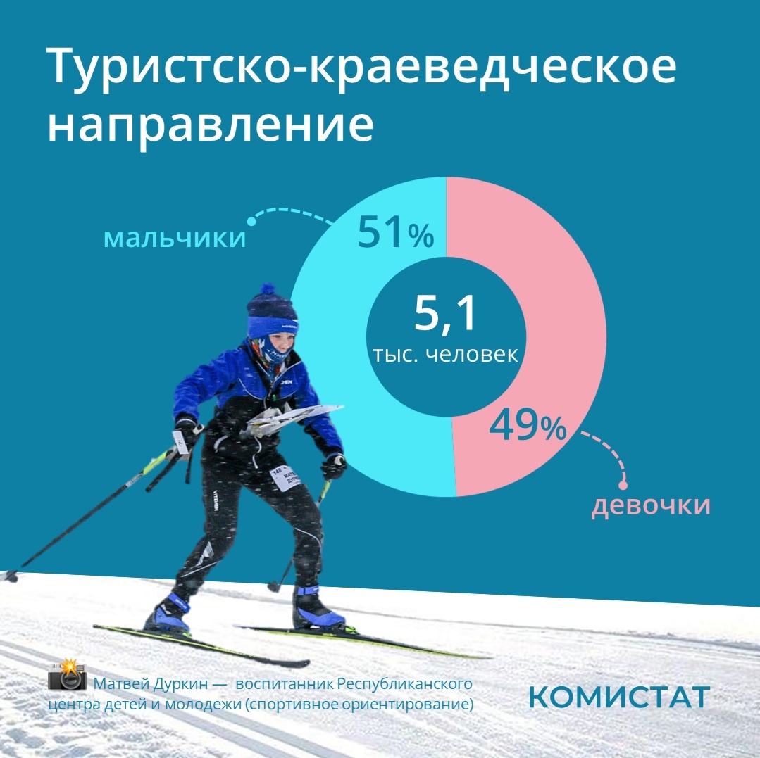 В других направлениях, например по туристско-краеведческому, уровень вовлеченности мальчиков и девочек существенно не отличается.