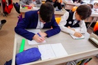 Учащиеся оформили письма рисунками и яркими надписями: "За победу!" и "За Родину!"