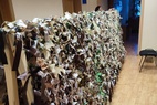 Специалисты АО "Комитекс" предложили волонтёрам на выбор образцы иглопробивных термоскрепленных полотен различных оттенков и плотности для плетения маскировочных сетей.