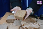 Волонтерам бесплатно раздавали кусок "блокадного хлеба" весом в 125 грамм – именно такой была минимальная норма хлеба на человека, установленная в блокадном Ленинграде.